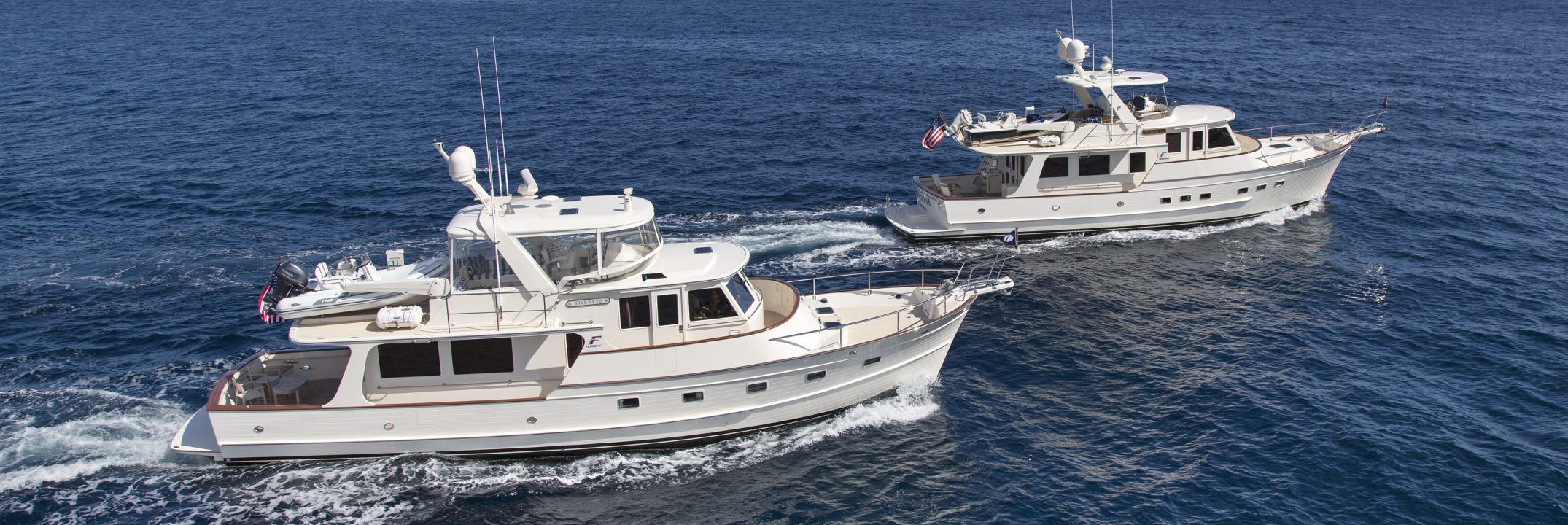 Fleming Yachts have always embodied a traditional style – featuring a timeless appearance with clean, sophisticated lines. The classic Fleming exterior isn’t just for show, their signature low profile allows for safe, effortless boarding while providing a low center of gravity for unmatched stability underway. As owner operated motor yachts, stylish and seaworthy have never matched so well. Even the larger-sized Fleming models exhibit the same clean simplicity that became so popular with the original Fleming 55 motor yacht.