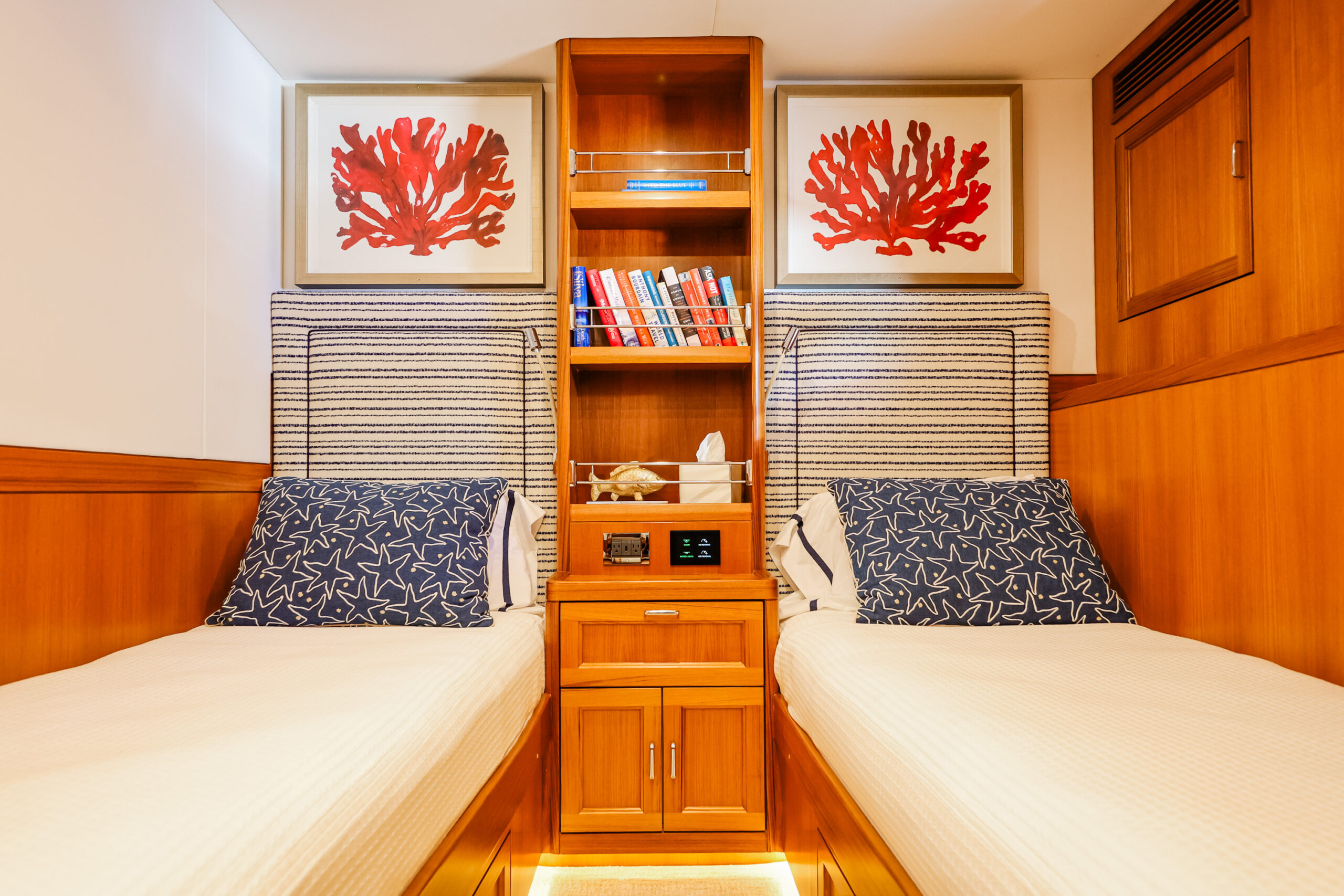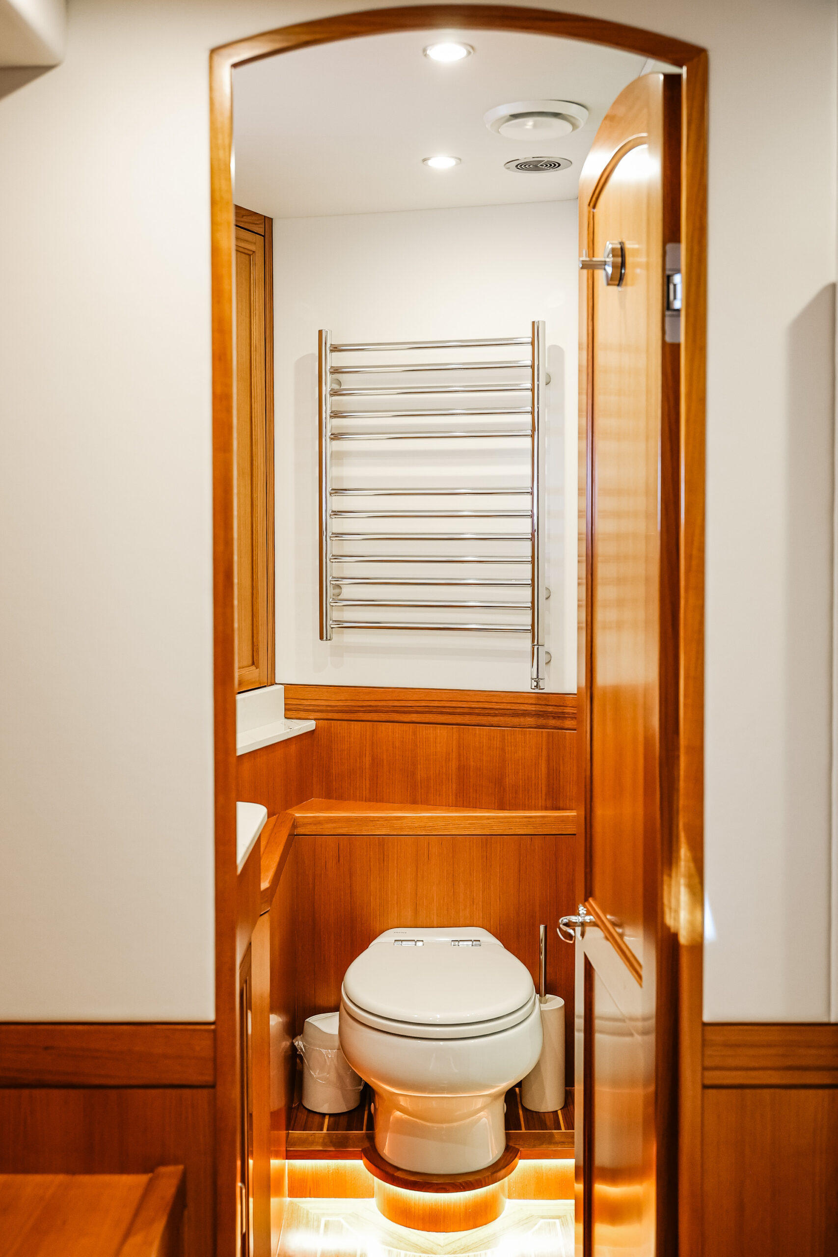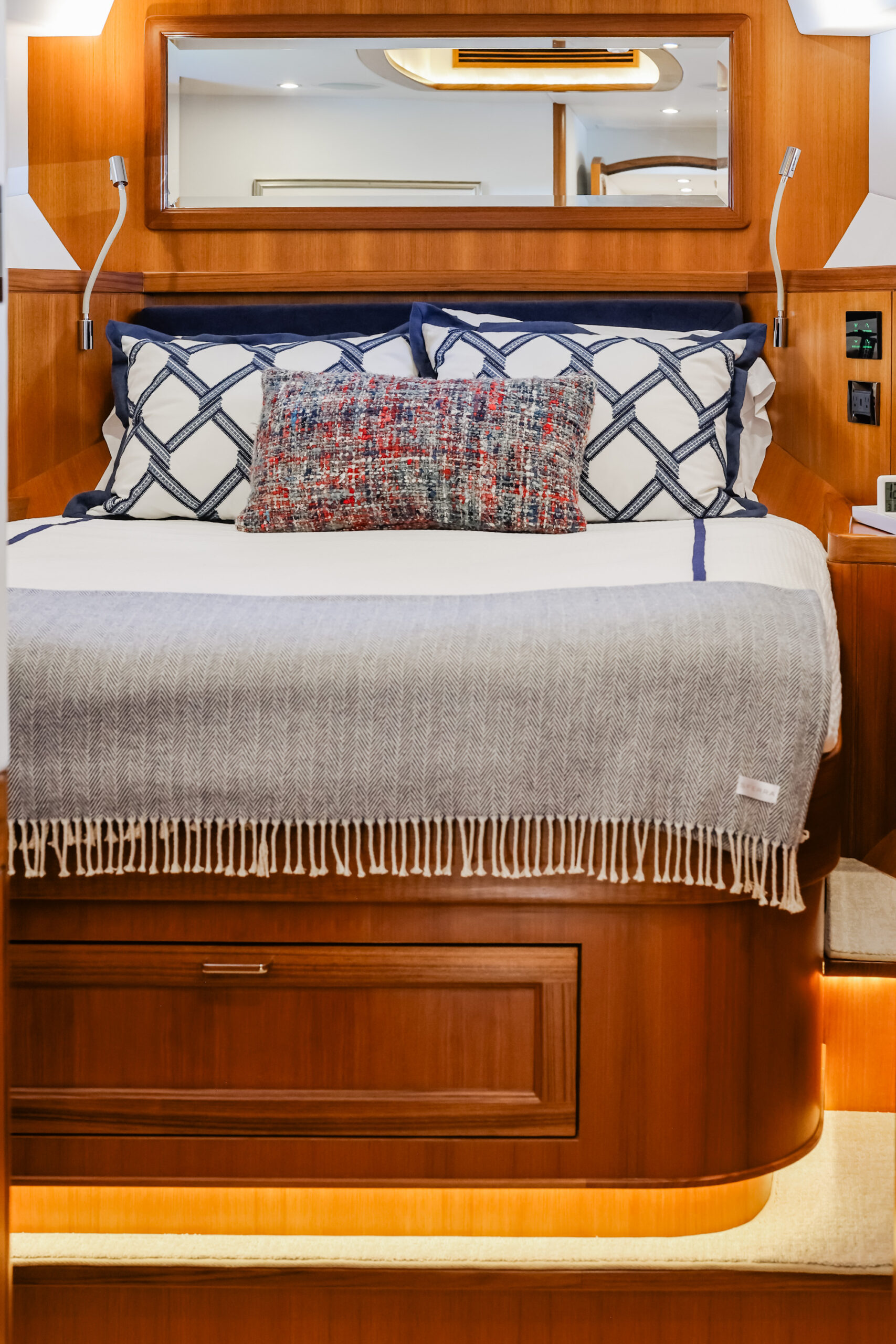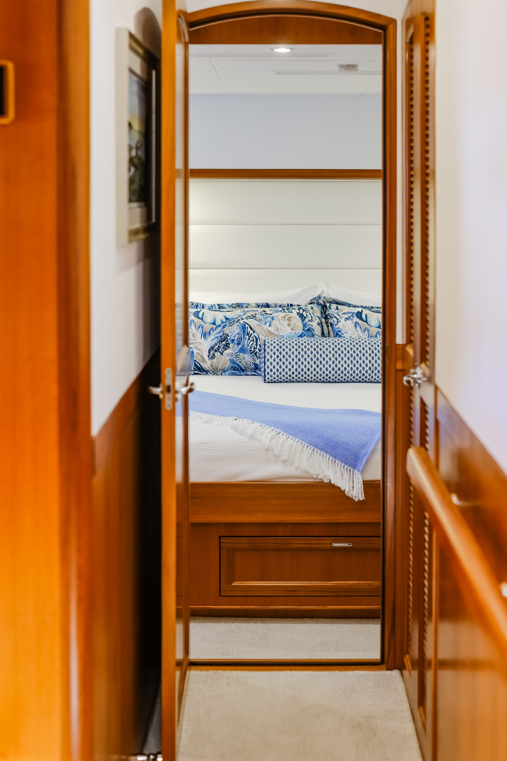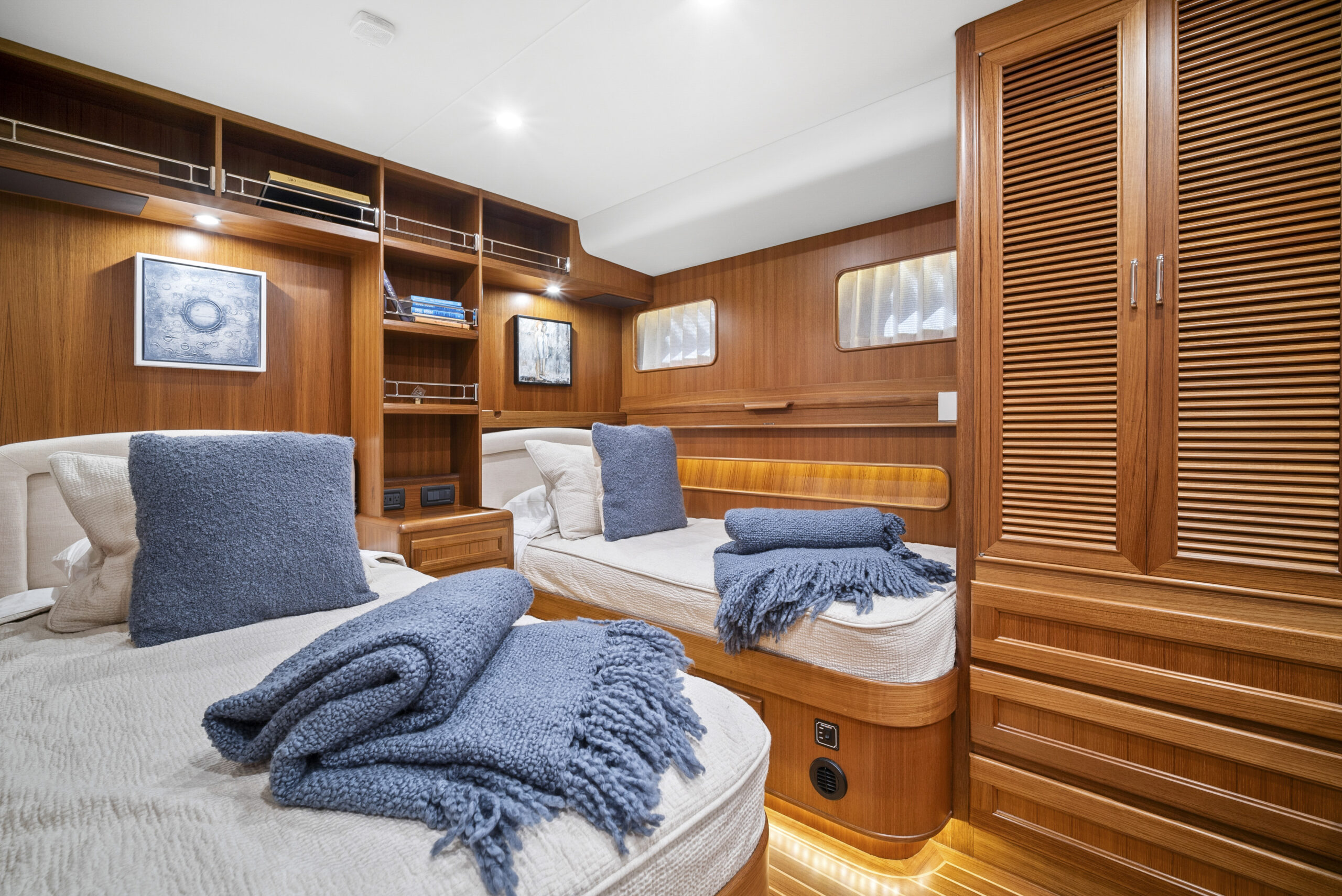 Despite these various trade-offs for the sake of seaworthiness, safety, and structural integrity, the Fleming Yacht is more than spacious enough and capable of exhibiting a luxury modern yacht interior. The semi-custom nature of the Fleming Yacht from the factory helps bring design and layout visions to life as you work with Fleming and Burr in the creation of your dream yacht. An extent of this flexibility can also be achieved for preowned Fleming Yachts with the guidance of Burr’s fabricators, carpenters, and interior designers to retrofit a pre-existing arrangement or decor to meet your goals.