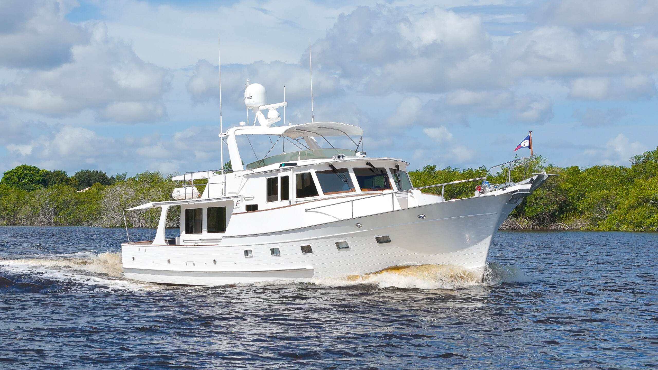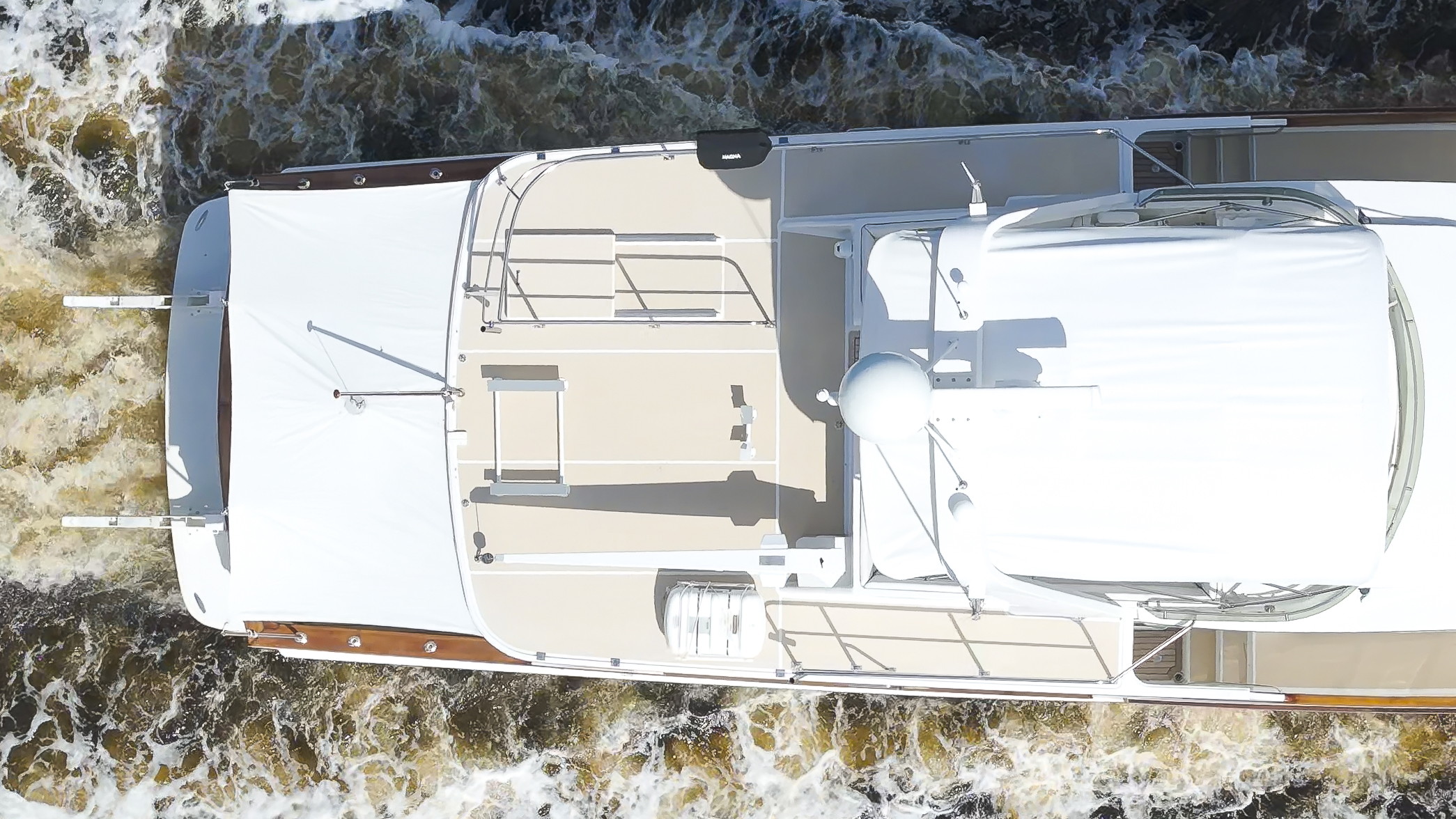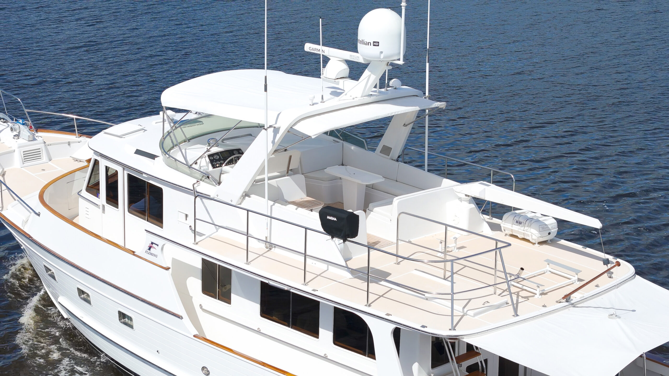 Following the five short steps straight down from the salon will lead you to the central passage of the accommodations. This traditional layout has been a signature mainstay in the Fleming 55 that provides an easy and convenient flow of traffic throughout the boat. This central accommodations passage also makes it possible to appreciate the full length of the vessel from forepeak bulkhead to transom. A manual whale pump is located beneath the accommodation steps from the salon. Once in the passageway you will find upper/lower bunks in the cabin to starboard and a VIP guest stateroom to port with twin berths. Just forward of the starboard side cabin in the passageway is the guest head. The en-suite master stateroom tops off the accommodations at the forward peak of the vessel.