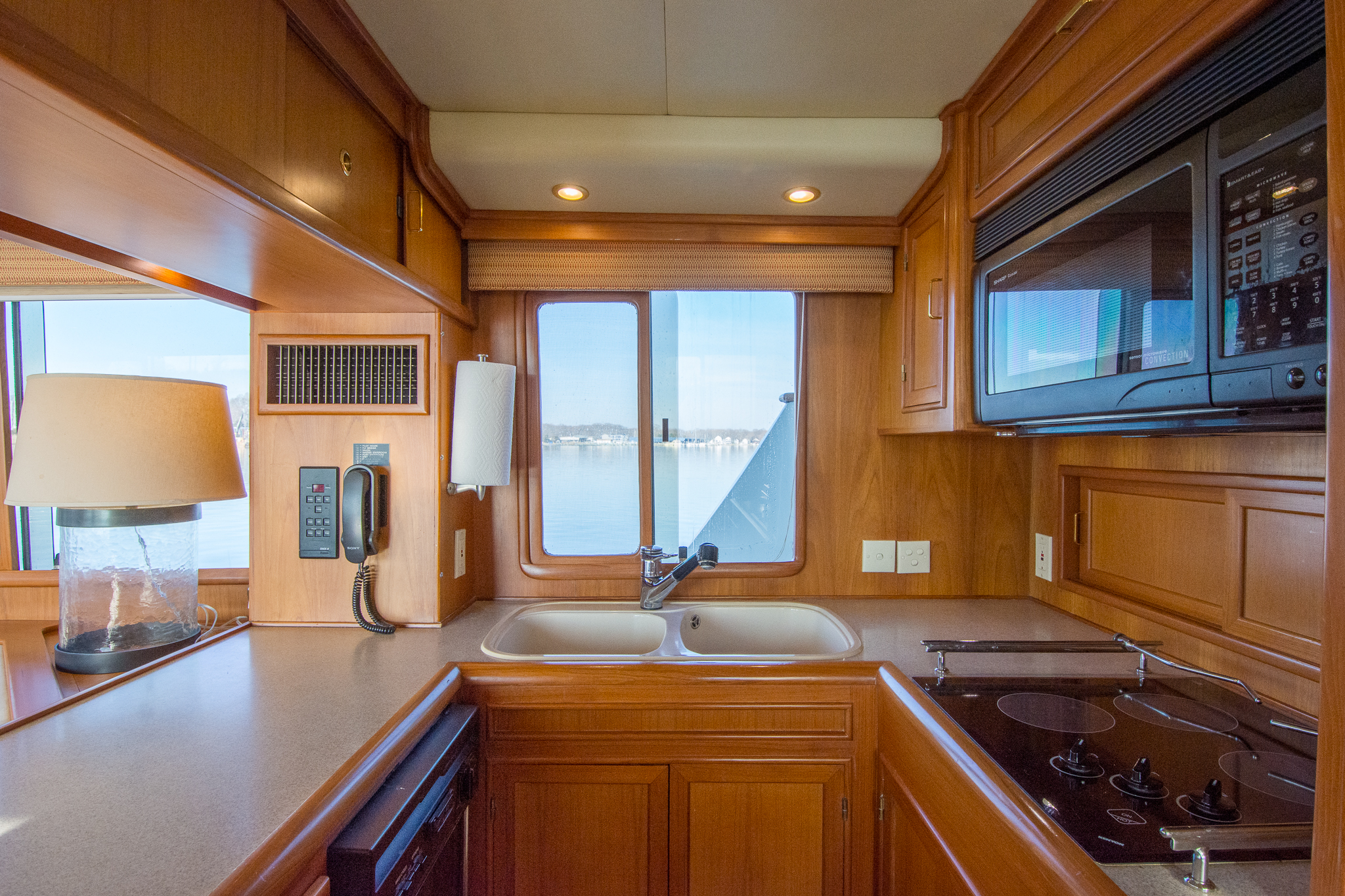Both master and guest heads are spacious with generous one piece molded fiberglass shower stalls. Each head contains Headhunter electric flush toilets, Hansgrohe thermostatic controlled fixtures, and Corian countertops.