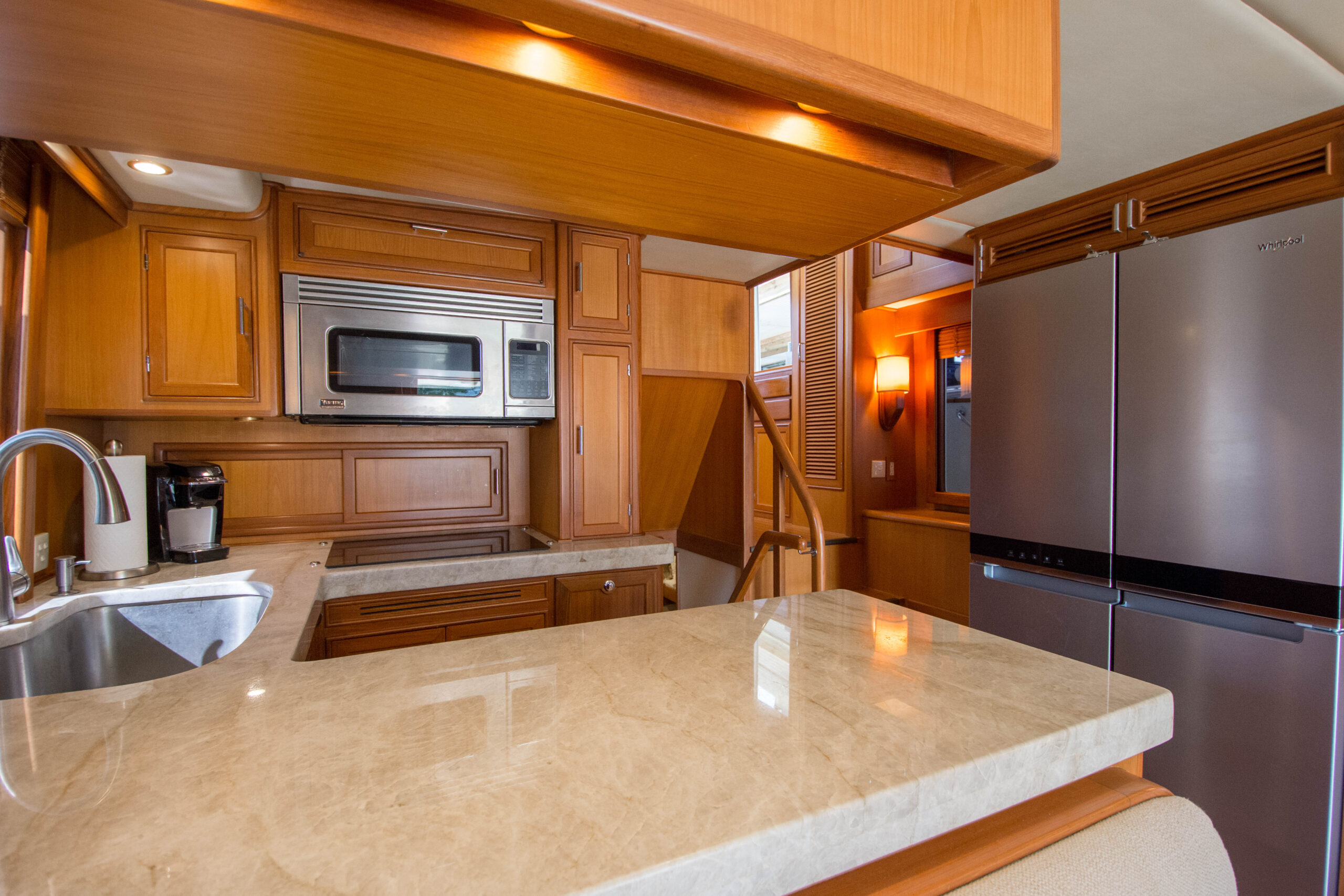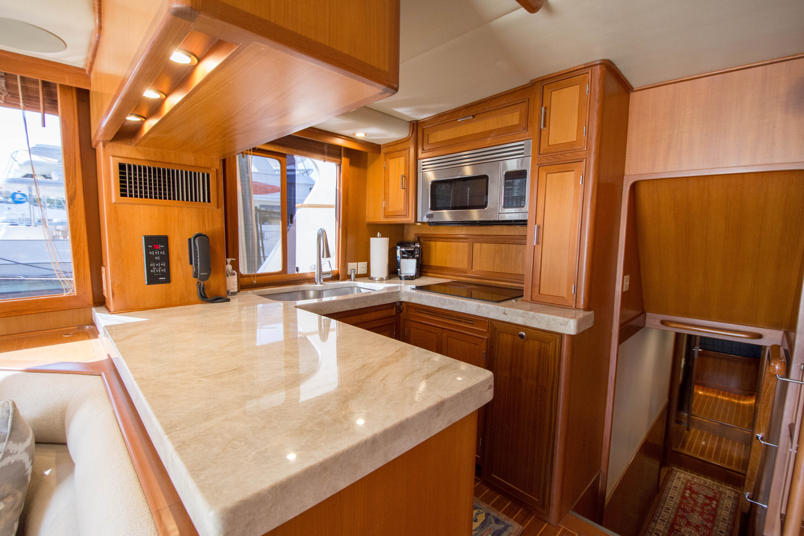 Both master and guest heads are spacious with generous one piece molded fiberglass shower stalls. Each head contains Headhunter electric flush toilets, Hansgrohe thermostatic controlled fixtures, and Corian countertops.