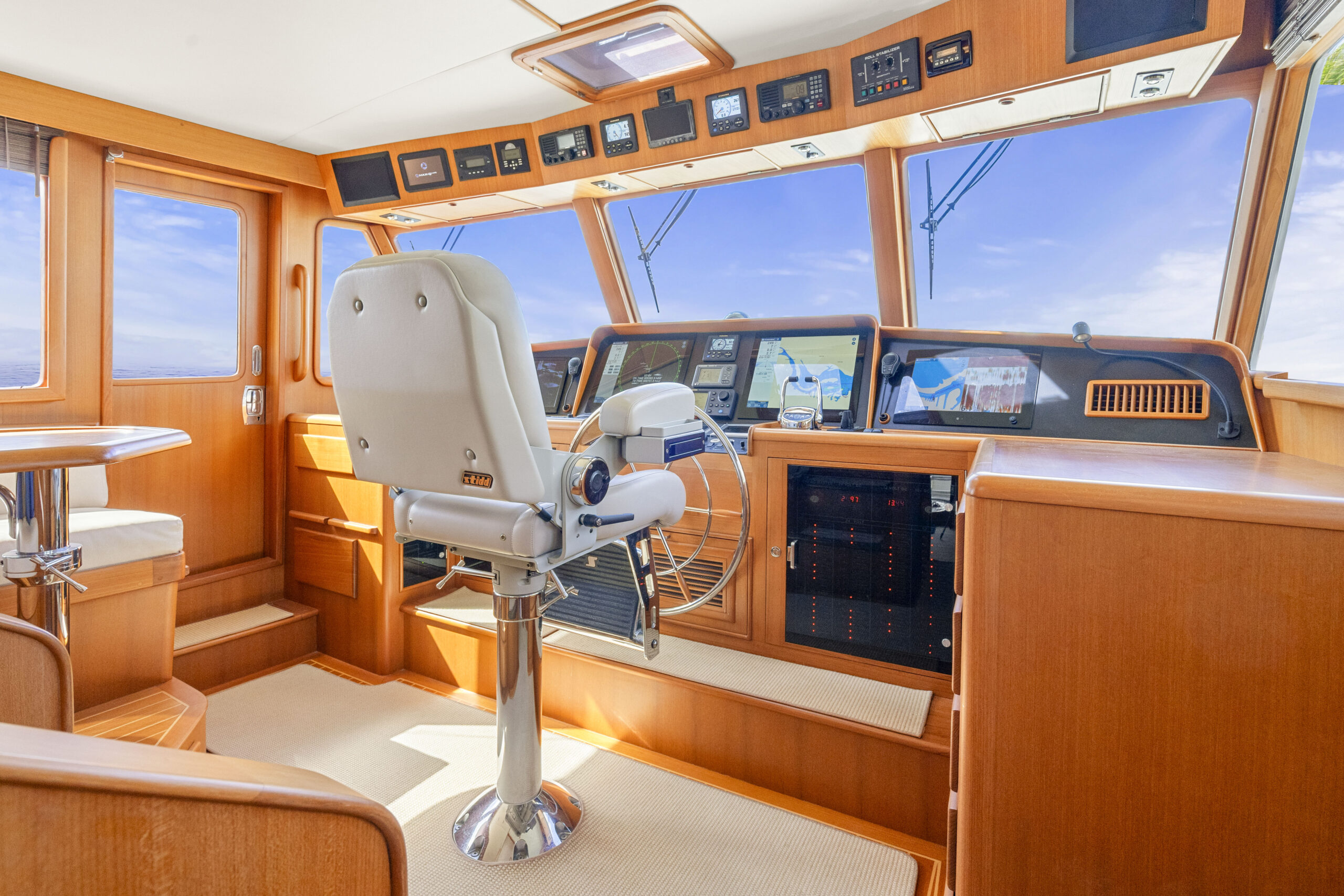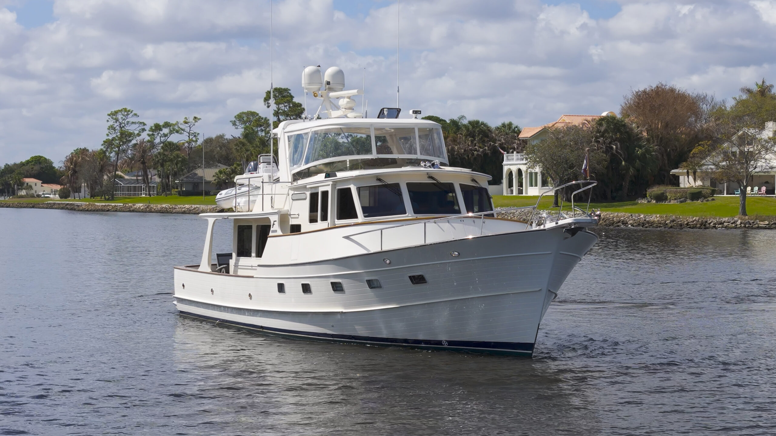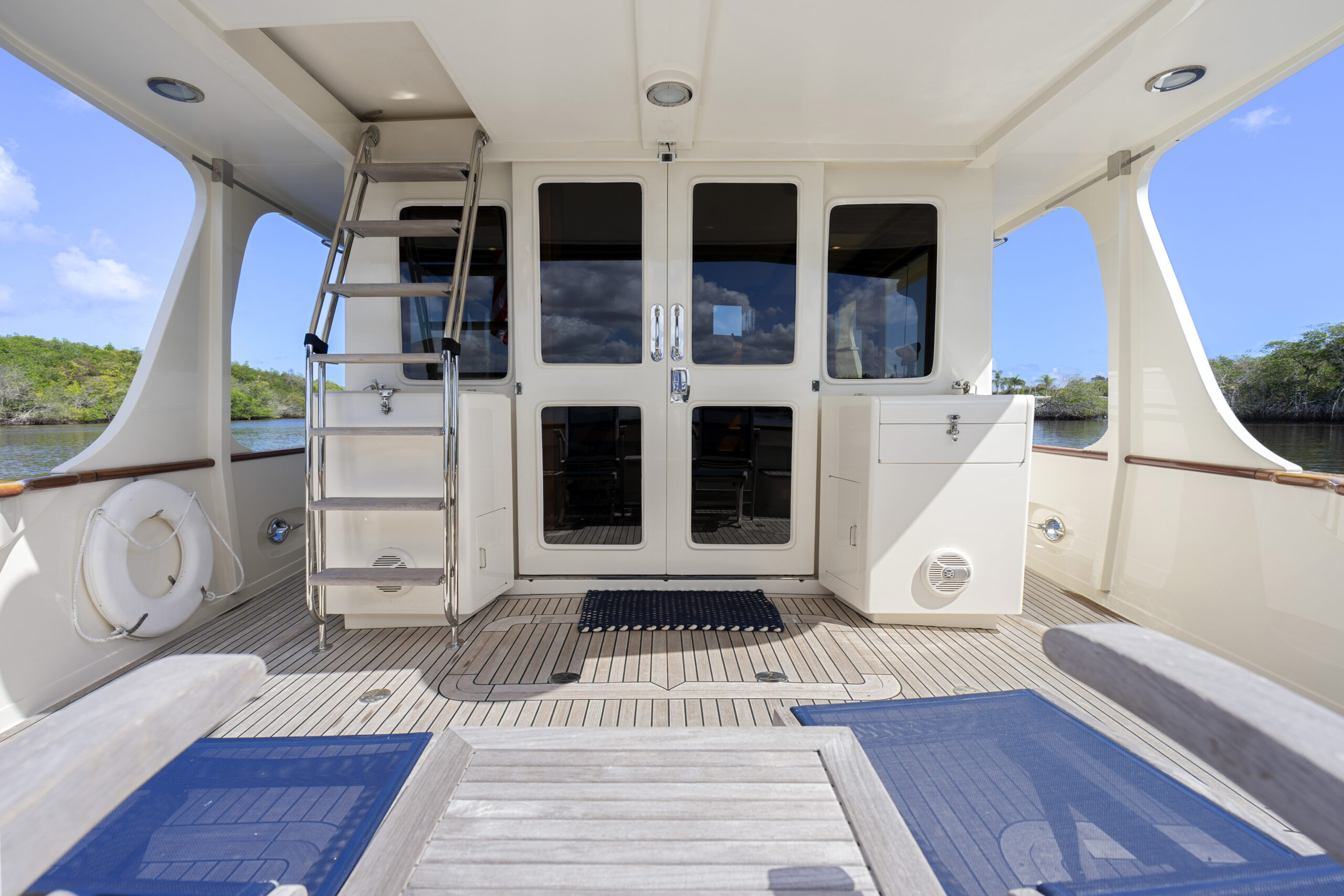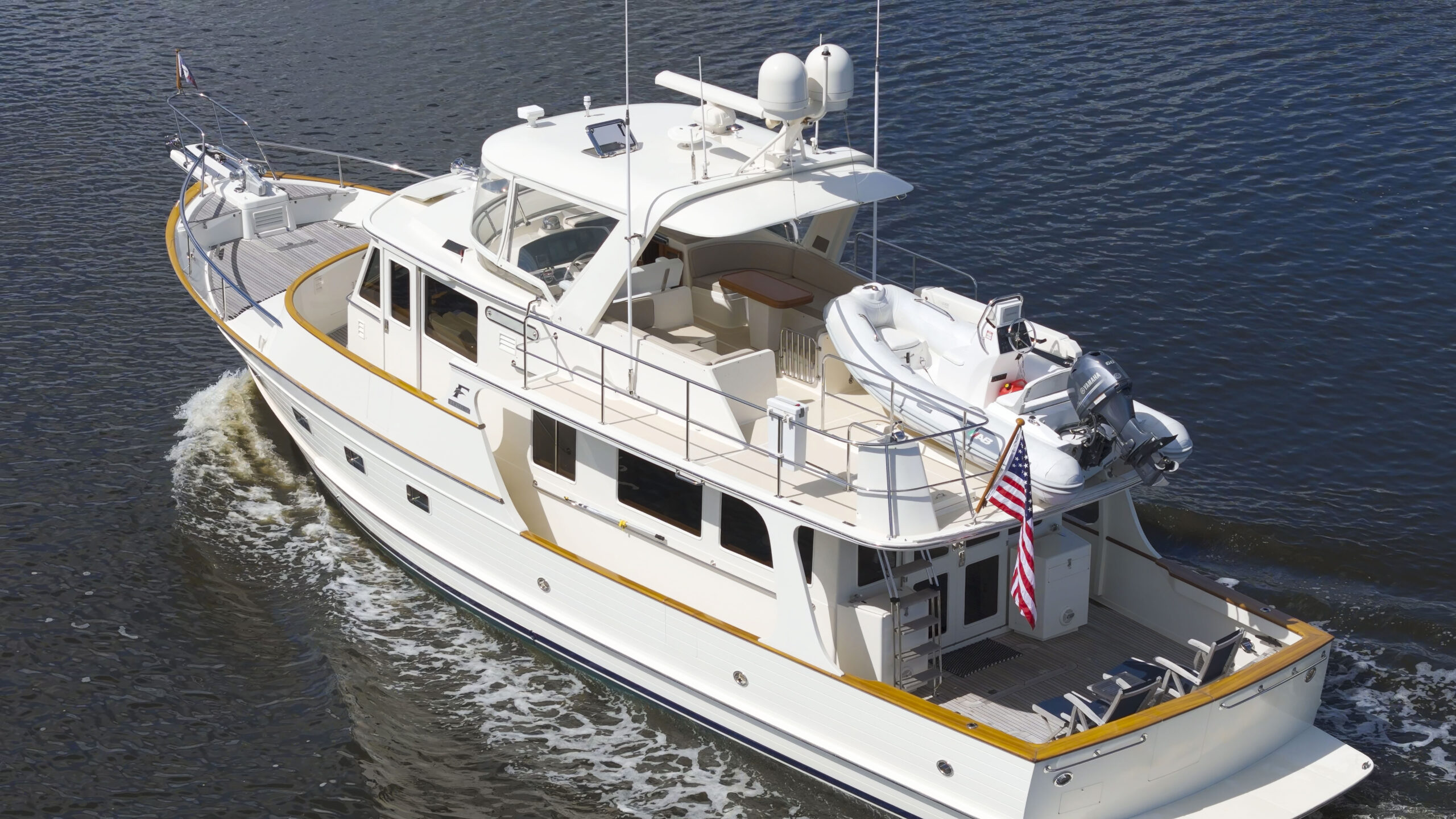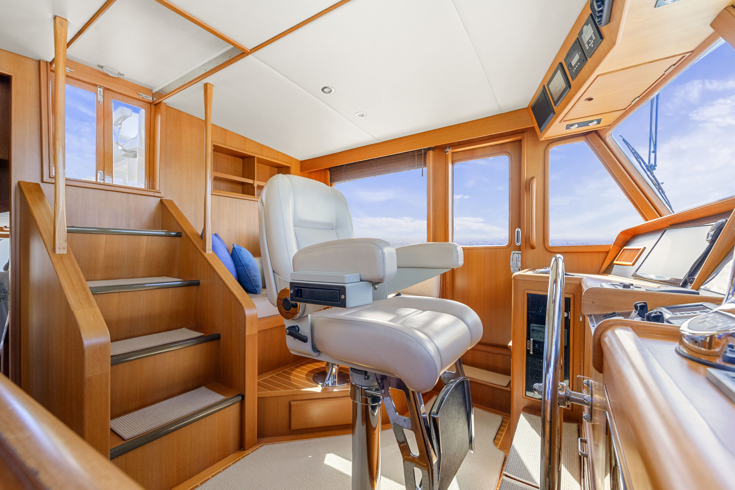 Following the five short steps straight down from the salon will lead you to the central passage of the accommodations. This traditional layout has been a signature mainstay in the Fleming 55 and provides an easy and convenient flow of traffic throughout the boat. The central accommodations passage also makes it possible to appreciate the full length of the vessel from forepeak bulkhead to transom. Once in the passageway you will find a two-berth bunk arrangement in the guest cabin to starboard and a VIP guest stateroom to port with a two-berth convertible queen arrangement. Just forward of the starboard side guest stateroom in the passageway is a full-sized Bosch Axxis 220v washer & separate dryer followed by the guest head. The en-suite master stateroom tops off the accommodations at the forward peak.